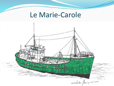 Le 2 décembre 1964, le Marie-Carole disparaissait dans une mer en furie, comme le cinéma nous en a donné des échos dans le film La Tempête. Voici une présentation des cinq membres d'équipage et de leur famille respective sur un fond musical du chansonnier Albert Babin.