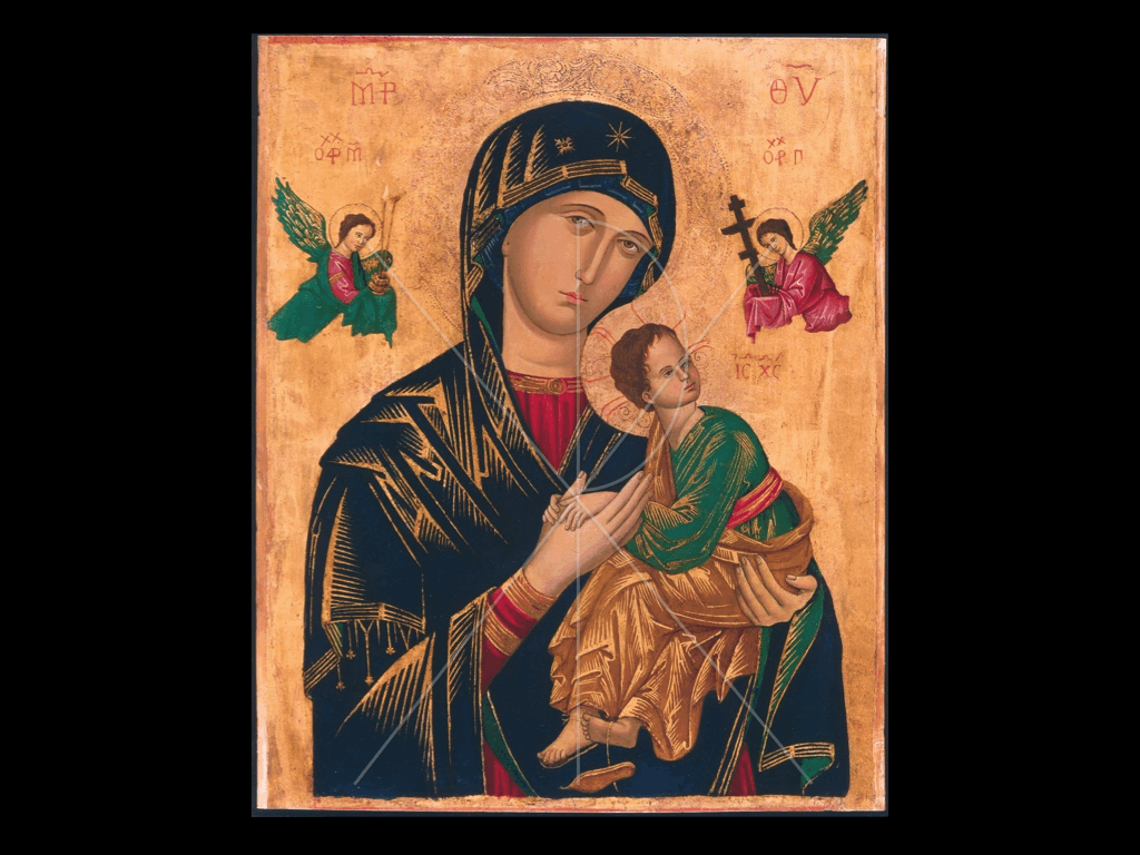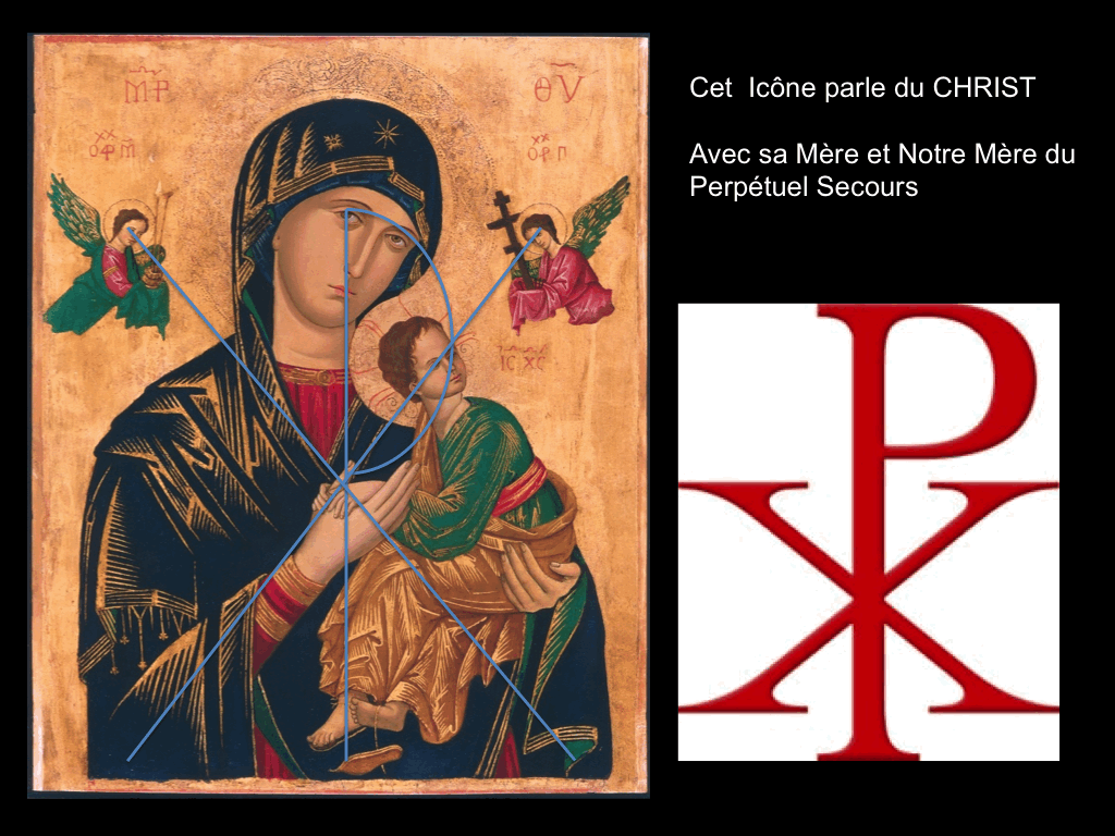 L’icône de Notre-Dame du Perpétuel-Secours est une sorte de fenêtre vers le Royaume de Dieu. L’Église d’Orient qui a conservé l’héritage des icônes, nous les font découvrir comme des fenêtres sur l’invisible. Tels deux rails d’un chemin de fer, la tradition biblique et la tradition iconographique se complètent pour nous conduire à Dieu; dans la prière, on lie une icône en scrutant les Saintes Écritures (Jn 1,18; 14,9; Col 1,15).